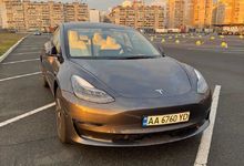 Tesla Model 3 Long Range Dual Motor 10.2023 року випуску (жовтень) у відмінному технічному та візуальному стані. Стильний сірий колір кузова у поєднанні з білим салоном.