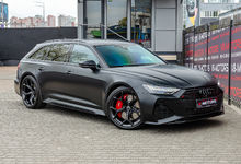 Кольца Audi и надпись RS6 чёрного цвета.